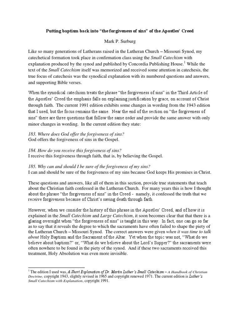 Putting Baptism Back Into The Forgiveness Of Sins Of The Apostles Creed Pdf Catechism Baptism